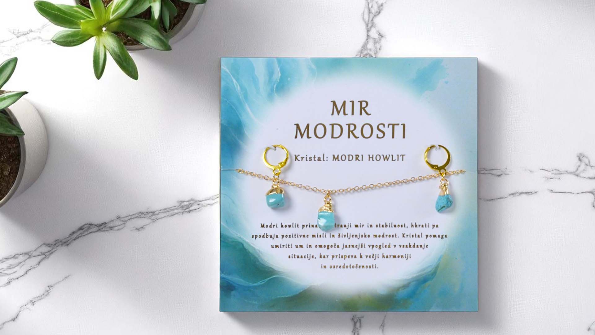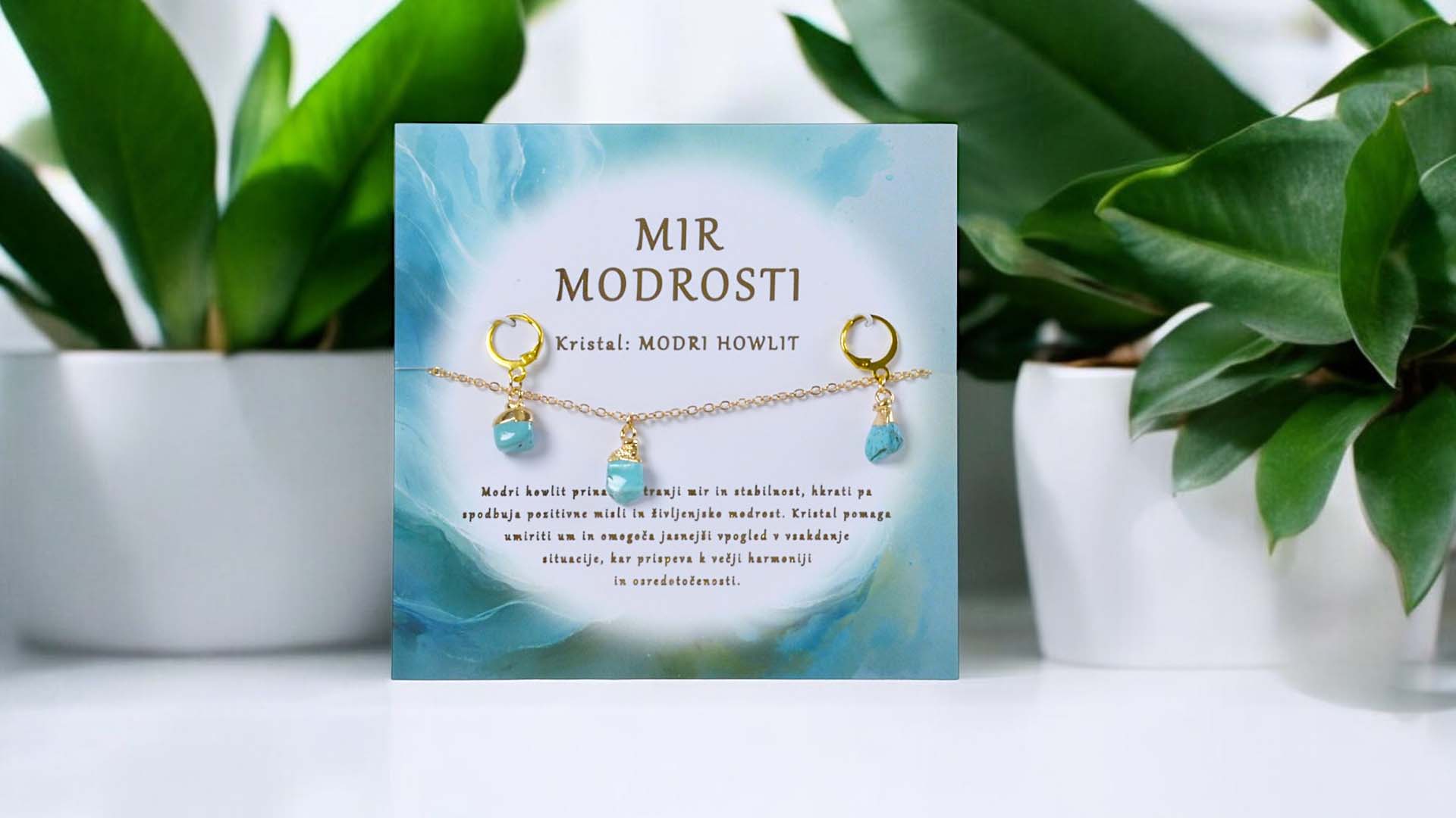 This energy set with a necklace and earrings featuring blue howlite brings inner peace, stability and deep life wisdom. This calming crystal helps quiet the mind, encourages a positive outlook and offers clearer perspective in everyday situations. An ideal choice as a personal reminder of harmony and focus – or as a thoughtful gift for someone you wish to offer calm presence and inner wisdom.